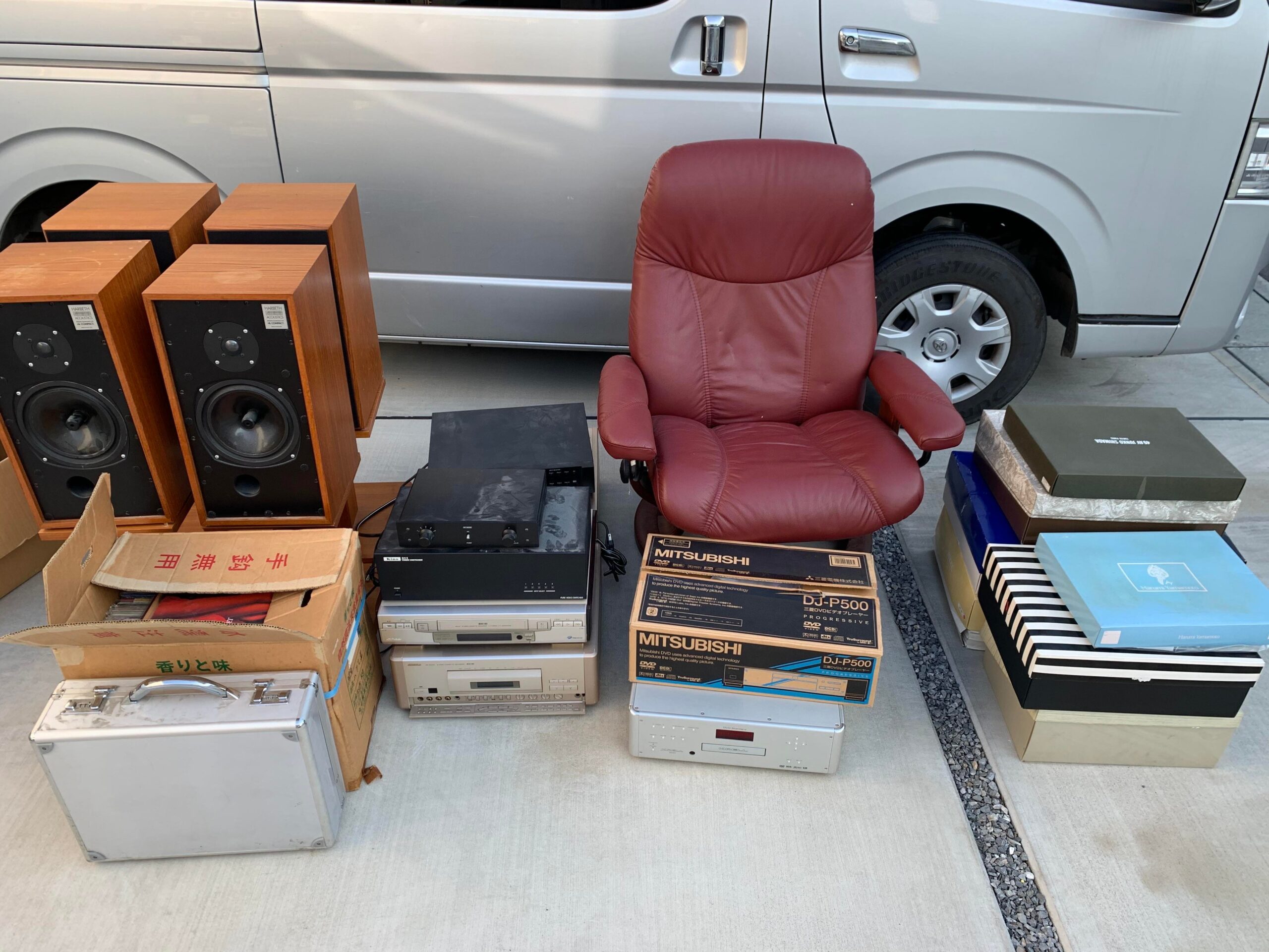 回収品:椅子、スツール、じゅうたん、扇風機、ソファ、陶器、シューズボックス、テーブル